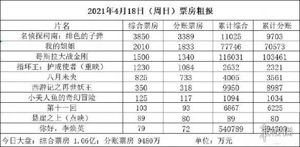 电影票房实时。4月18日周日,全国共排映38.2万场,观影人次约307万,根据初步统计产出票房1.06亿,下面跟着小编一起来看看排行榜吧。