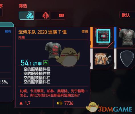 《赛博朋克2077》武侍乐队2020巡演T恤内搭获得方法介绍