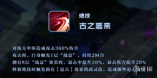 由于绝技可以触发“追击”效果,因此应选择有“追击”效果的武灵技。灵技推荐“暴极斩”:不仅在首位释放时可额外获得自身颜色灵气,还能在释放技能后提升暴击率,相当适合依靠暴击打极限输出的炼狱典韦。武技方面推荐“有死无生”,在被攻击时可以恢复生命,属于被动反击型技能;或者“鬼刃汲元”,攻击后可按伤害比例恢复生命,属于主动出击型技能。