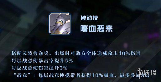 炼狱典韦的输出比较依靠续航,即多次出手叠加战意,直到叠满8层获得最大收益。同时战意又能为炼狱典韦持续增强吸血能力,为他的持续战场提供稳定体力恢复,从而使他成为可以搭配任何体系的“自给自足型”输出。