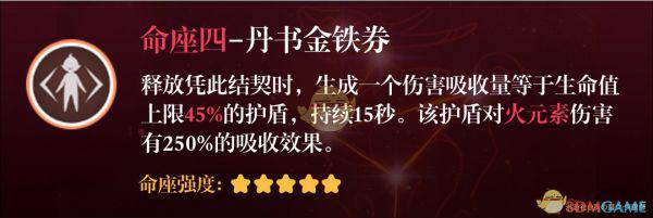 质变命座。相当于多了半条命,在特定火元素环境下多了一条命。一定程度上解放了队伍里的护盾位置,尽管无法带来直接的伤害提升,但是对于输出环境的优化是立竿见影的。(我可莉要是有这个还用带钟离当保姆?)