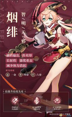 烟绯是《原神》中一位新出了璃月4星火法C。如果玩家没有火C的话,还是很建议抽的,平a手感比可以好,但是基础攻击和重击倍率什么的和可莉肯定是没法比。如果是喜欢烟绯的外形,那么自然也是可以培养的,目前来看输出能力是完全够用的。下面为大家带来烟绯的全方位培养指南,来看看武器圣遗物以及配队方面都怎么选择是最好的吧。