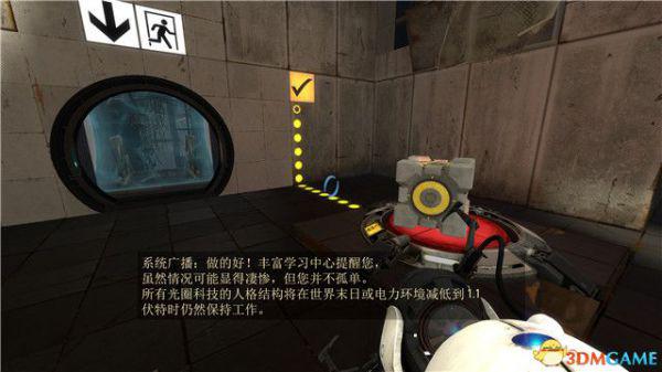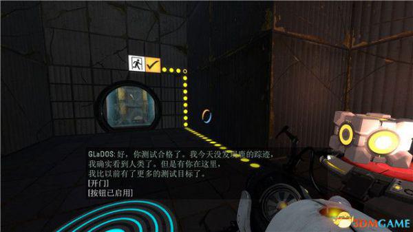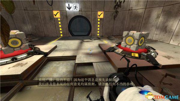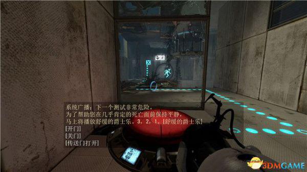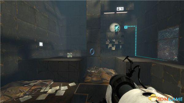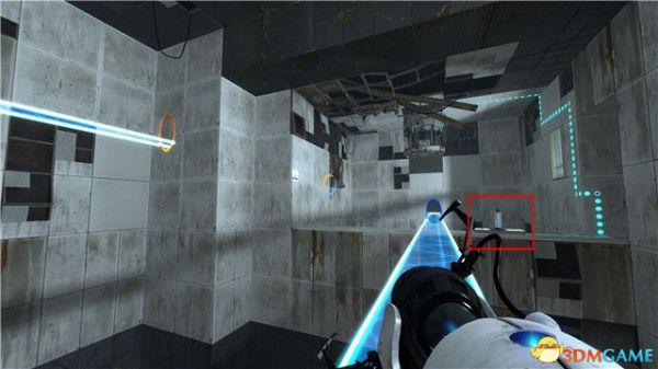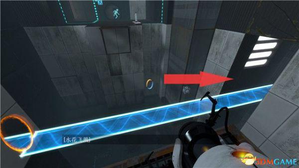 在本关最后的逃生门这里,你可以找到附近的白色墙板,射击形成蓝色传送门后,逃离这个区域。