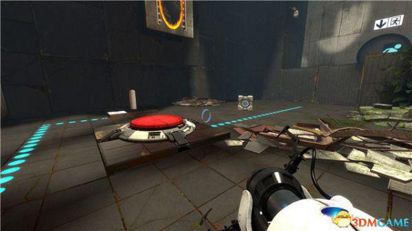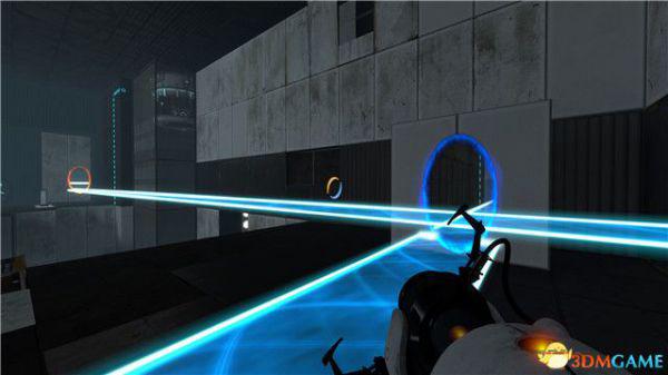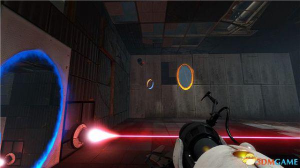 当然,你只有朝那种特殊的白色板材射击,才能形成蓝色传送门。