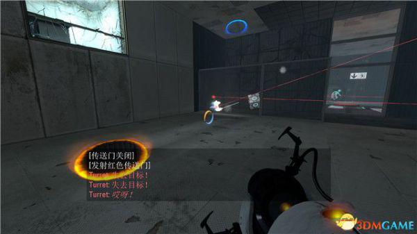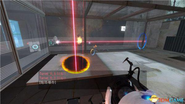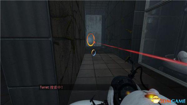 对抗第三个炮台的方法比较简单,你只需要抓紧时间射击它脚底下的墙壁,形成传送门。
