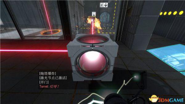 这样你就可以穿过这道传送门,到达那个炮台后面,将其破坏掉。