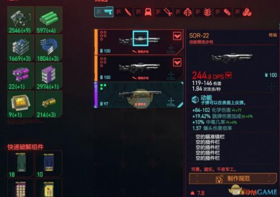 《赛博朋克2077》传说武器无限制作方法介绍: