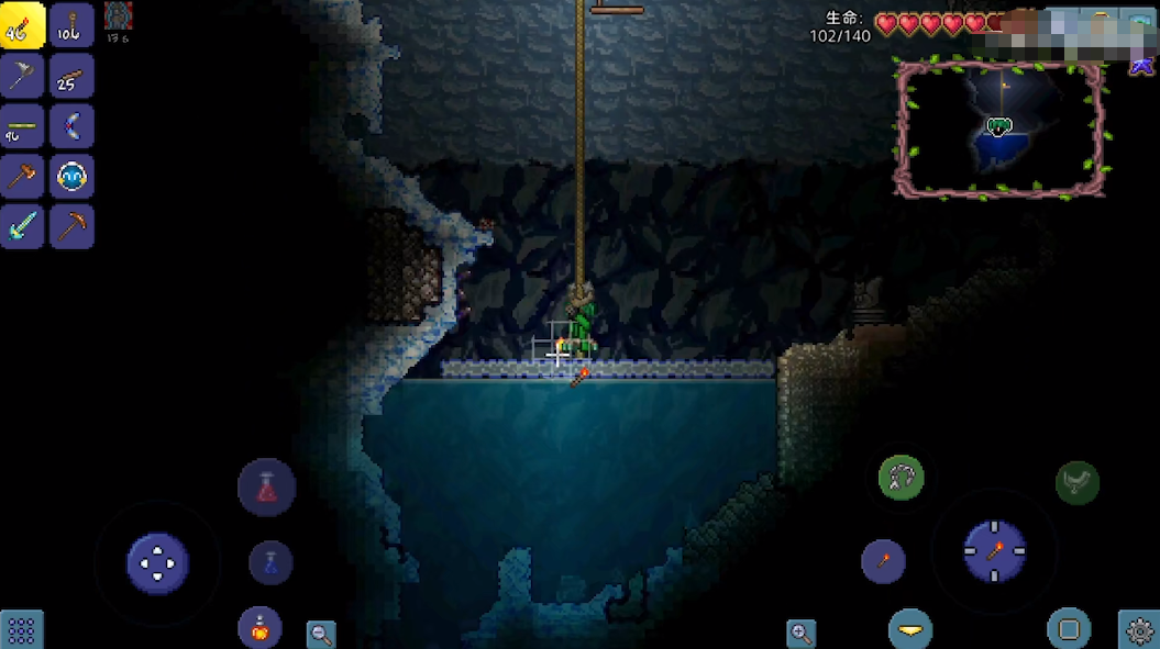 挖到足够的铁矿之后,可以做一套铁护具以及铁武器,随着装备的不断更新,可以向下挖掘的更深一点,如果装备跟不上的话,地下的各种怪物会非常轻松的秒杀你。在地下如果看到发光的红心可一定不要错过,这可是能永久增加20点生命值的好东西,可谓是前期最重要的东西了。