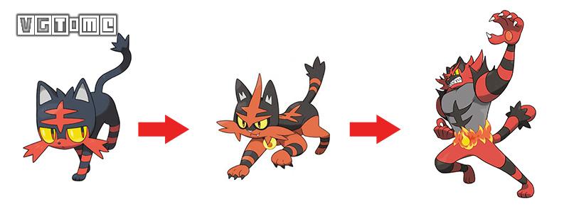 火系,火斑喵→炎热喵→炽焰咆哮虎