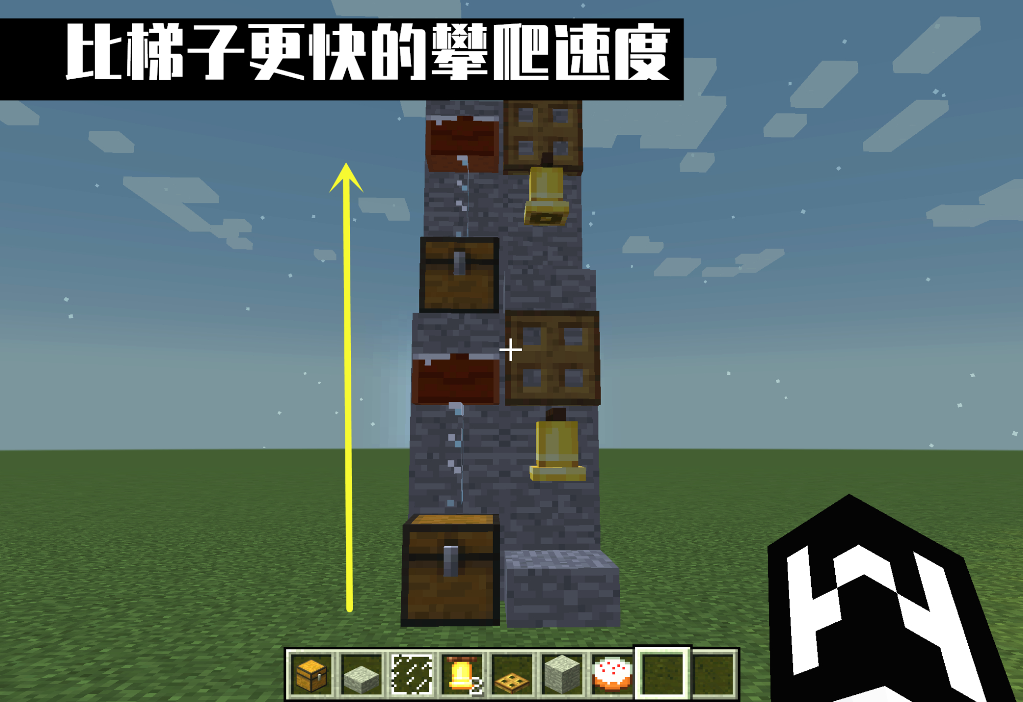 梯子,作为一种可向上攀爬的工具,虽然合成简单,使用方便,但它最大的弊端就是速度太慢。而台阶速度虽然快,但是需要不断地横向放置,大多数情况下会有空间的局限性。因此,一个不需要用到梯子,就可以向上快速攀越的方案就出现了。