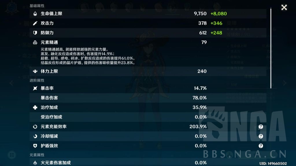 莫娜,81级,精炼4试做金珀,宗室4充生治,Q技能只点了6级: