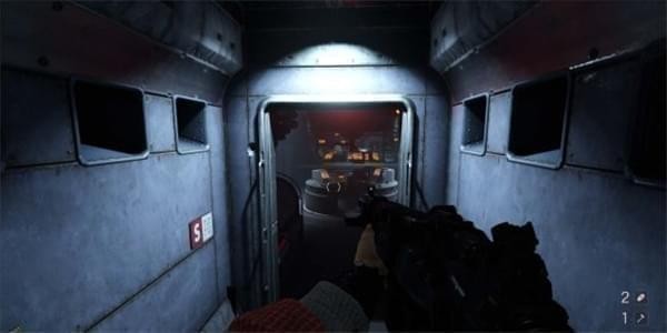 出了这节车厢后有个机甲兵,铁轨两边也有机关枪支援,干掉或者直接迅速冲到下一节车厢,车厢内战斗和前面一样利用房间做掩护补给,到达车厢尽头就是控制室,进门后拉动开关。