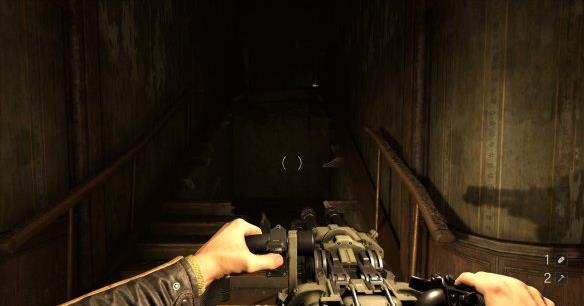 去过场动画的伤病处,按使用键互动得到一把冲锋枪。