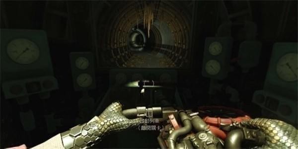 清完狗后进左边车厢一路前进,走到尽头往右拐到达另一节车厢,继续前进。在尽头有一个机甲兵,如果镭射枪用完了可以在旁边充能,上去充能机甲兵是发现不了的。击杀机甲兵后获得柴油枪,可以打开发动机房间的大门。