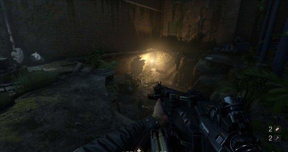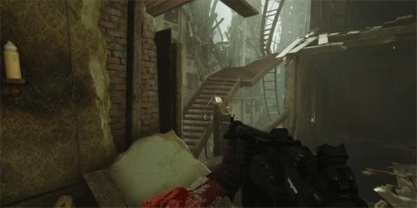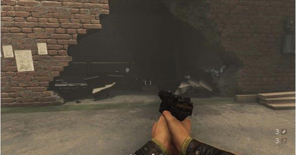 [4]从底层下水道离开 从水中游上来,发现此处也盘踞着纳粹士兵。干掉后上楼,楼房内敌人不多暗杀后开门结束关卡。