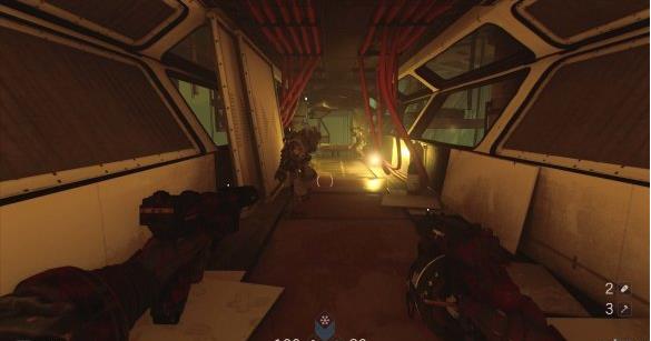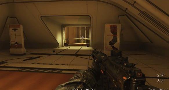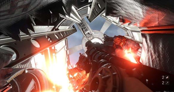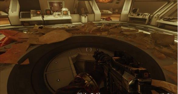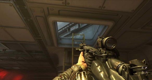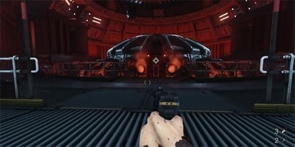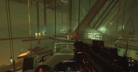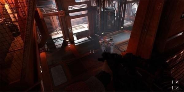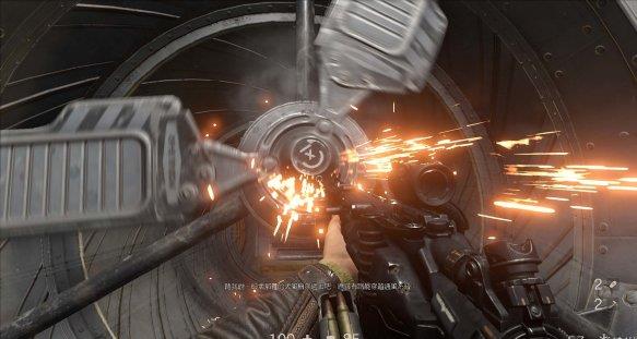 [3]关闭右舷防御系统 交通舱上升途中被机甲兵从上方偷袭,按E从交通舱出来跳到对面平台,用枪打停风扇钻过去。