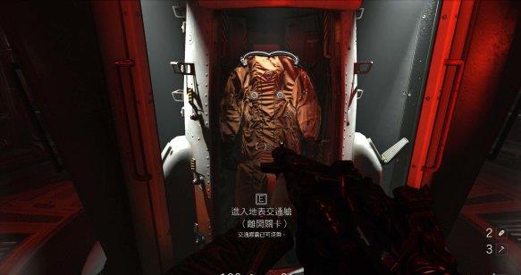 出门后有个重型机甲兵,干掉后笔直走,走到尽头往右拐穿过科研室,之后沿着地图走到底,就能看到地表交通舱,进入后离开关卡。沿路敌人数量庞大,选择暗杀部分敌人比较妥当。