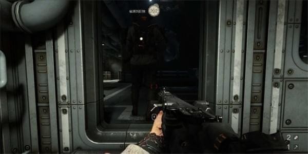 从口子穿过返回安雅所在处,此时安雅整被人围攻,由于是从敌人背后出现,可以打对方一个措手不及。但是要注意左侧位置有镭射炮台,冲过去时要优先击杀操控镭射炮台的士兵。和安雅会合后坐上交通舱前往灭绝者号上部。