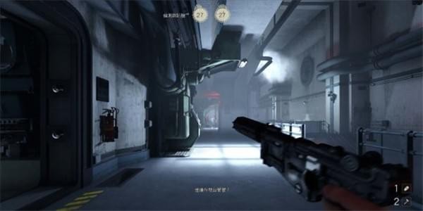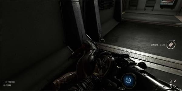 [3]解除防爆门锁定 穿过自动门按地图走,拐2个弯下楼,到达指挥中心位置,这里可以捡到一把柴油枪。继续往前走在楼梯口有架没有启动的机甲兵靠近直接近战攻击清理掉。这里还有扇铁门撞进去可以捡到新的武器战斗手枪。