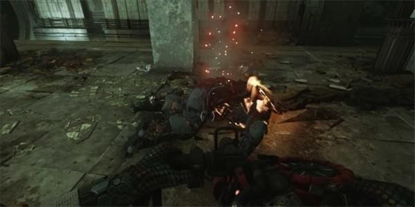 可以从背后暗杀掉敌人,最好的战斗方式就是暗杀,因为和敌人硬扛很容易几秒就死掉,敌人冲锋枪射速超快,常常满血被秒。