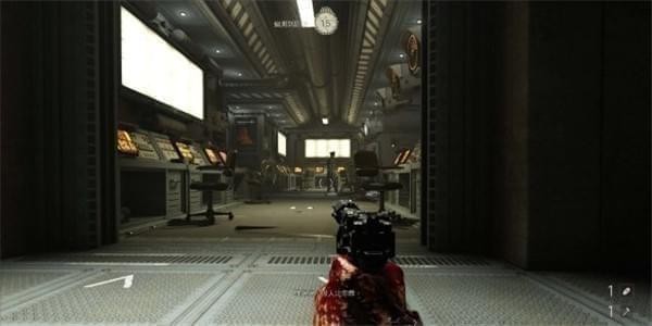 [5]与安雅会合 来到主控制中心后2有巨型机甲兵巡逻,这里建议直接往右边走,顺手干掉指挥官后,进入小房间上扶梯,在2楼用镭射枪远程狙击巨型机甲头部。