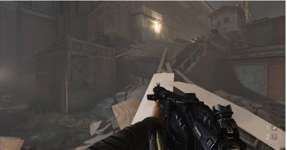 这里有一处微波强,两个德军试图通过微波墙进攻主角的时候,被微波墙撕成了碎片。