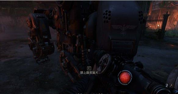 【纽奥良 下】 [1]分散纳粹的注意力 费了不少口舌,霍顿终于决定加入克莱稍帮助B.J他们对抗纳粹。离开前霍顿希望B.J骑着他们捕获的机械狗引开纳粹,好让霍顿手下的肃清者们逃到港口。 本关开始可以骑乘纳粹的庞蒸猎犬,庞蒸猎犬有800点护甲,伤害也很高基本可以在纳粹士军队面前横行无忌。
