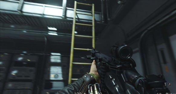 或者从地道钻到大门后面,出来后击杀指挥官解除警报。往前走爬上扶梯。