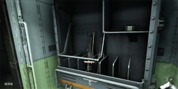 注意这层也有2个机甲兵但不会第一时间出现小心被阴。解决后,沿着地图上方的铁管可以进入控制室打开大门。出门后爬上扶梯,来到核弹房外。这里有2架侦察机及1个机甲兵击杀后来到2层打开核弹房门。核弹房门打开后会有3个机甲兵支援,准备好镭射枪击杀。房间能有充能装置如果电能不够充能完后再开门。【为直升机充电】 拿到核弹回去找葛蕾丝,葛蕾丝让B.J去给直升机哈斯一号充电准备下一步行动。