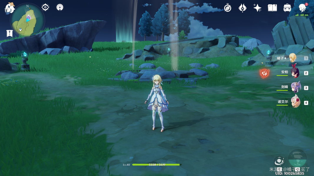最后一个超简单,在这里就是下面“风口”的上方的山坡上,我现在位置的兔兔伯爵上方,把这三个引导仙灵送它归西就可以开启图一的风口了,然后站在风口跳跃起飞调整方向就可以进传送门了,马斯克礁哪里还有一个风神瞳记得拿哈。