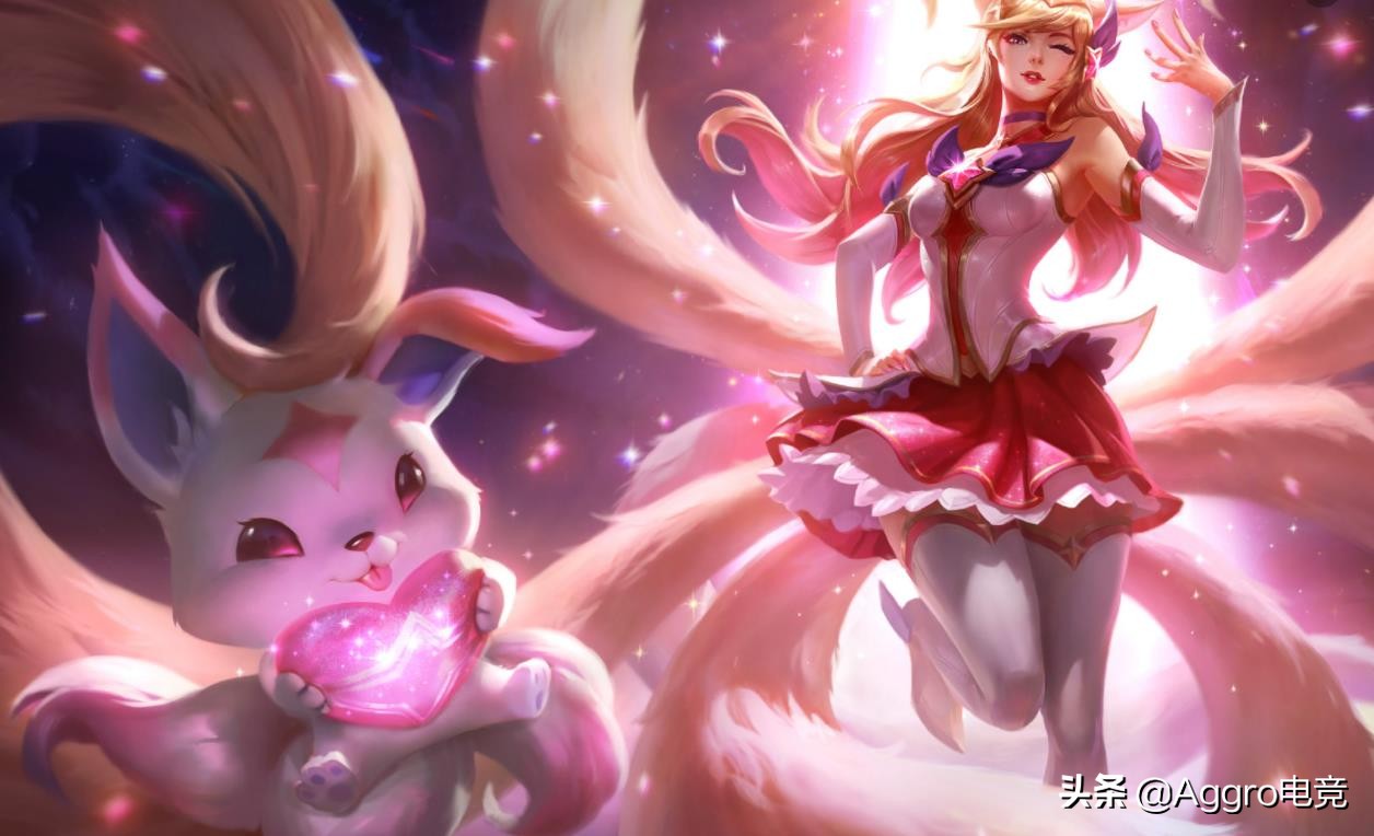 人气最高的当然得是阿狸,作为英雄联盟中最有魅力的女英雄,在这次皮肤中肯定是C位,粉红色的配色,青春少女的着装,只不过尾巴只有7只,旁边还有抱着“魅惑”的兔子,非常可爱。碎花小裙配上阿狸的容貌,真的无解!阿狸在手游的地位一直不低,灵活爆发都还可以,也是上分首选。