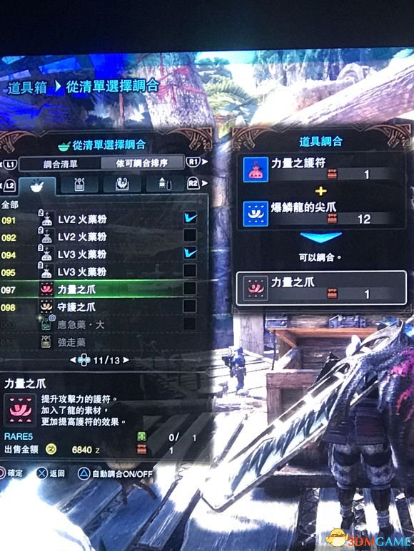 合成的方式很简单别看99那是上限,其实只需要一个爆鳞龙的尖爪+力量护符,即可合成。守护爪雷同。