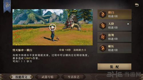 这个技能是原地不动,向前方发出高能光束,可左右水平移动,故称为横扫。由于该技能释放时无法移动,适合在巨兽倒地或者被控制时使用,不然很容易放空,或者被巨兽痛击,但前期输出就很强势,对付聚在一起的小怪更是蓄能好手。