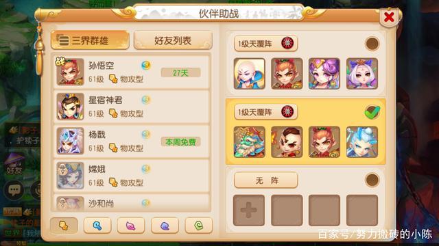 女儿村:没难度任务(如打宝图,押镖,师门等)推荐使用助战:红孩儿,铁扇公主,西海龙王,小白龙(四法系加快战斗时间效率,带物理系太拖效率)难度任务(如秘境降妖,星辰之路):阎罗王,惠岸行者,孙悟空,红孩儿。