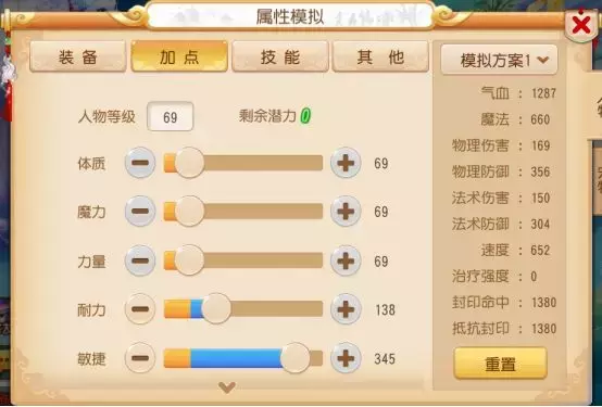 无论怎么加点,大家都可以看出,敏捷对于女儿村玩家的重要性,所以这套加点也一样,在速度上不输他人的情况下还保证了一定的血量和防御力,在挑战白虎王或者是地煞、星官的时候可以使用它。