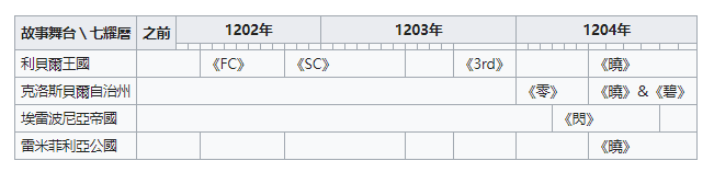 其中3,4,5也是一个系列(卡卡布系列?),这个系列讲的故事和轨迹系列一点关系都没,所以不玩也没事。从6代开始就是我们熟悉的轨迹系列了,先给个时间线图(来自wiki百科):