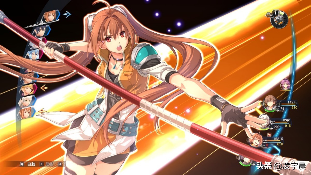 《闪之轨迹》系列传统的序列回合制战斗系统其实并没有什么值得特别提及的东西,4作包括后来的《创之轨迹》都基本相同,敌我双方按照屏幕左侧的顺序攻击就完事了。当然为了让攻击玩出花样来,法老控在普攻外还设置了魔法、为同伴加BUFF的勇气指令、消耗CP值的战技和CP值达到100才能释放、200才满威力的S战技。特别是S战技释放时会有立绘展示以及一大段炫酷的动画,当然看多了也就腻了因此法老控也很贴心的设置了跳过功能。当然自动战斗功能制作组也同样提供,只不过有时候CPU控制角色会有点傻傻的,您还是得盯着看一眼,不然低难度下也有可能团灭的。