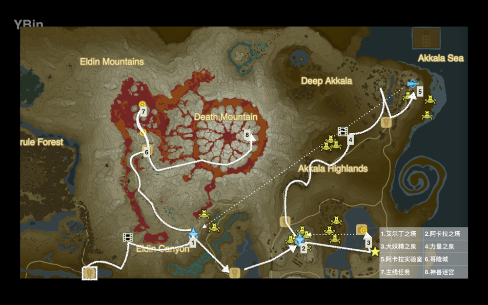 综合考量冒险与战斗的难度,在这里较为推荐如下图所示的路线,在进入哥隆城前先去阿卡拉实验室买好古代箭;在山脚驿站买好防火药水。