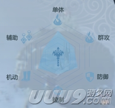 从六芒星图可以看出来,武侠的属性十分的均衡,单体输出、控制、机动、防御都不会差太多,是一个全能型角色、必要的时候可以当肉、输出也不会低。