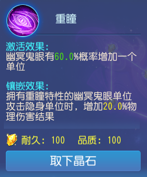 原镶嵌效果:使用凝滞术、破甲术、放下屠刀特技时,效果提升20%,持续回合增加3回合。