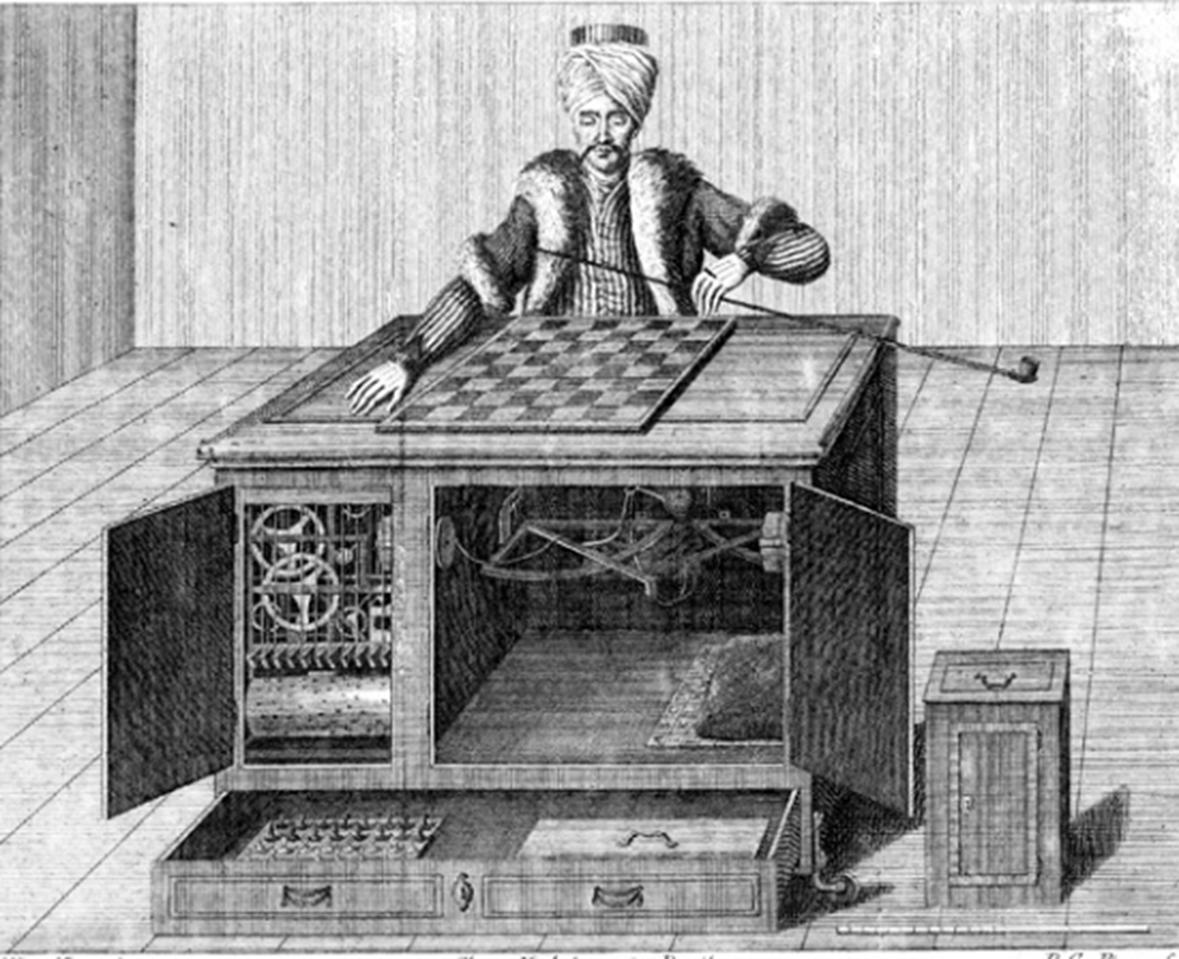 可能有人会怀疑,那个年代怎么会出现这么跨时代的产物,不应该是那个大箱子里藏了一个人嘛?事实上也就是这样,但在行棋傀儡最后毁于大火前它横行的84年间,没人发现它的秘密,就算打开箱子看到的也只是一堆齿轮,这也多亏了设计者的巧妙设计。直到1857年,在一本象棋月刊上,行棋傀儡的秘密才被揭开。