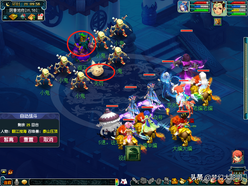 简单的战斗,血量不高,猴王分身开始会一速封天罚,可以点杀它,因为它下回合必秒你宝宝,两个夜叉是stl