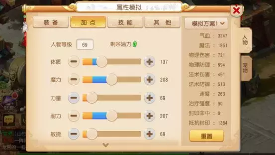这是一套适合各种具有一定难度活动的加点方案,气血和抗性都得到了大幅度的提升,但相对应的就是速度会很慢,可以走开大流,也可以强化带速度属性的装备,这都需要依照玩家自己的喜好来决定。