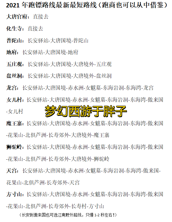 以上为跑镖最短路线,都是经过数据测试得出最新结论。
