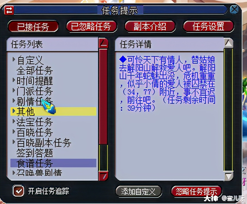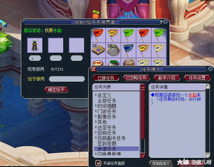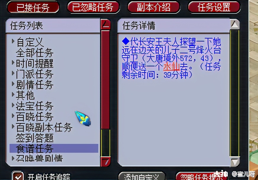 比较麻烦的是,所有的美食后续任务都是无法在任务追踪栏的,必须点选alt+Q打开任务才可找到任务提示。