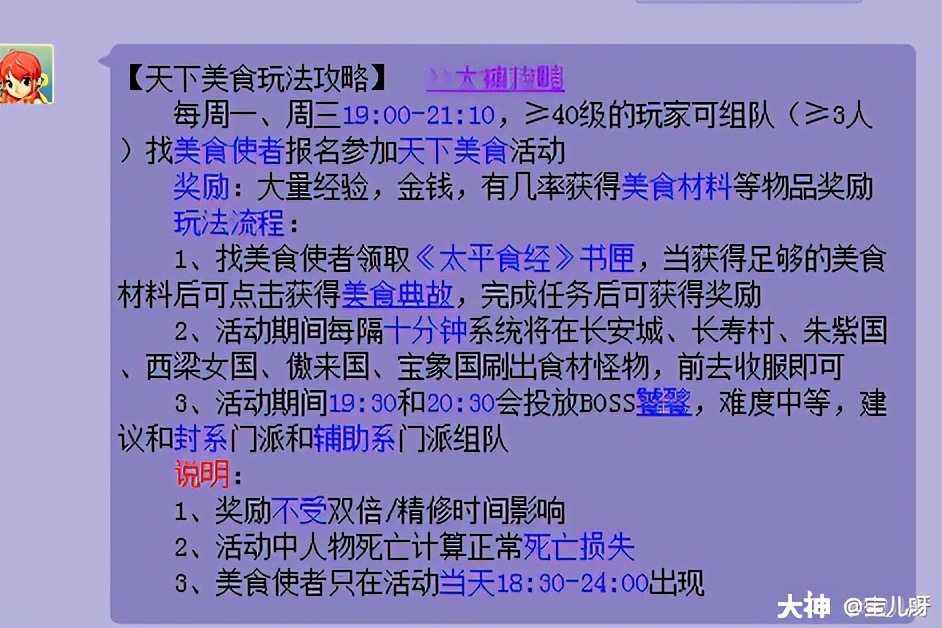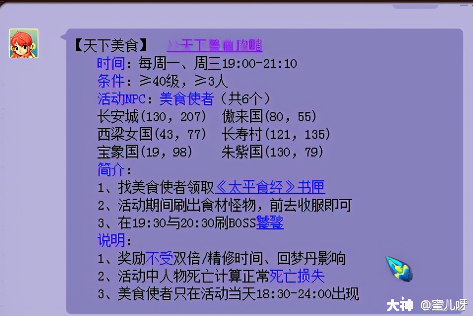 本篇攻略到这里就结束啦,如果在7-8点比较无聊的小伙伴可以考虑去玩玩美食哦,20只的收益也还是不错的。但是,8点有天降辰星,还有帮派迷宫。8点以后还是选择这2个收益会比较高哦。