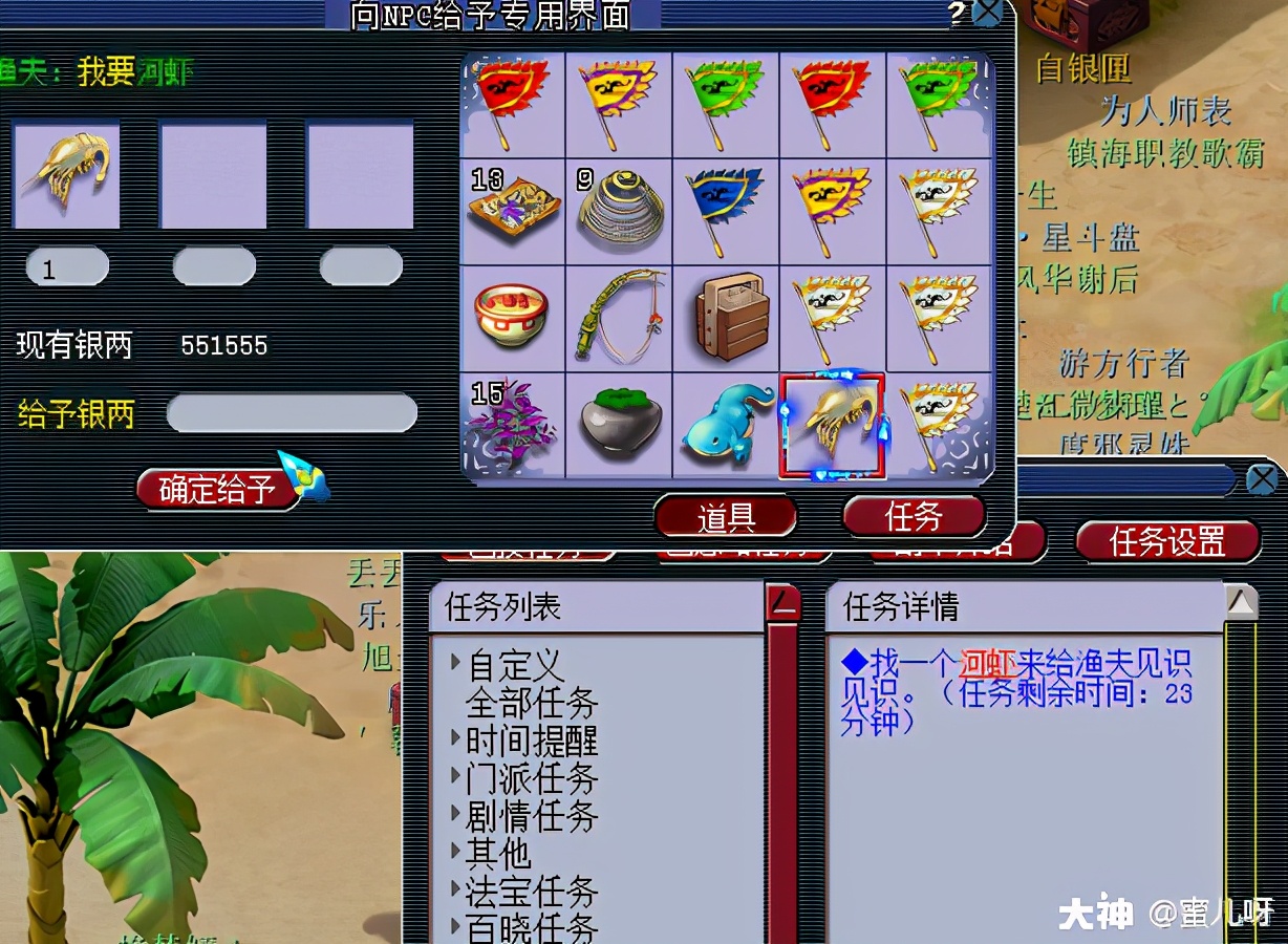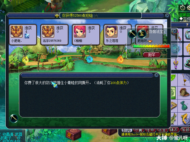 等了三分钟,掉到了娃娃鱼和宝箱,河虾就是不出现