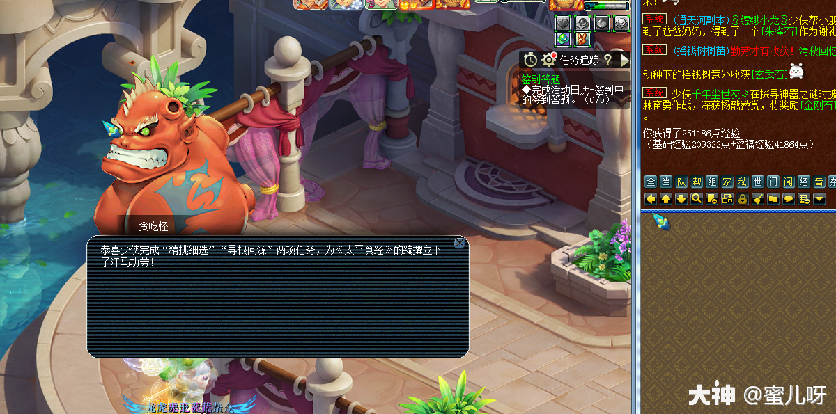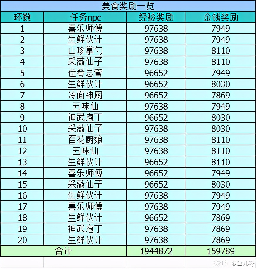 任务奖励:经验、金钱、美食材料等