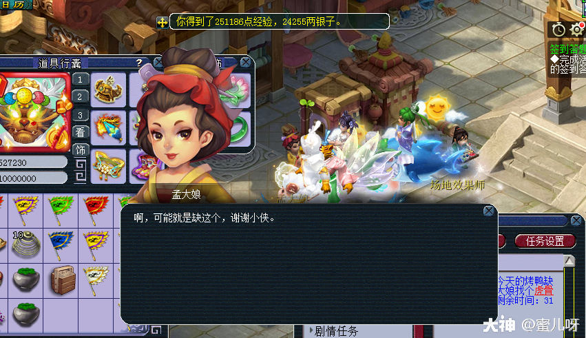 任务奖励一览:总共杀了20只妖怪 ,获取将近200w的经验,16w的金钱。