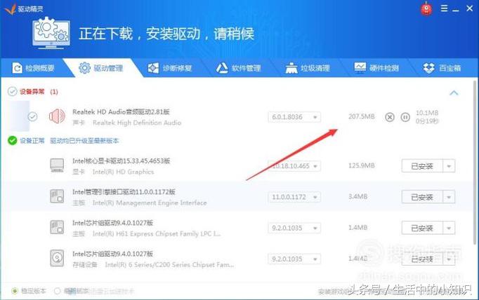 点击气候的安装选项就会下载我们的声卡驱动程序,如图所示: